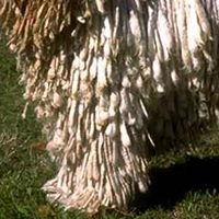 被毛:被毛有两层,一层柔软、浓密、絮状的底毛。披毛为结实的绳索状,触摸的感觉象是毡制的。