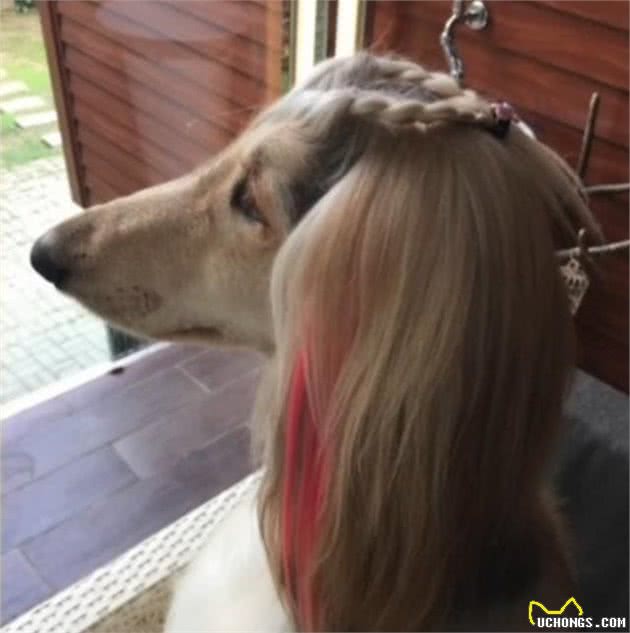 对于阿富汗猎犬的印象,就是拥有娟秀的长发,尖尖的鹅蛋脸,拥有着一双迷人双眼,还会默默散发出一种高贵的气质感。这只名为「汗汗凯莉」的阿富汗猎犬,主人在牠头顶上,打造出多种漂亮发型,弄完之后,好像气质小公主一般。