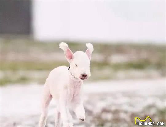 2.贝灵顿梗归属于十分难搞混的犬品种,由于外型真是太尤其,一身细密的被毛,有点像只小羔羊。