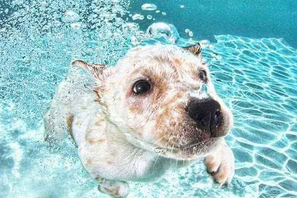 1、温度高时选择游泳让狗运动: