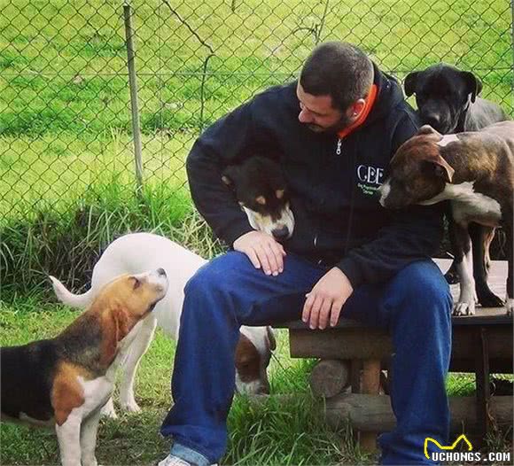 但凡见到他的狗狗都喜欢围着转