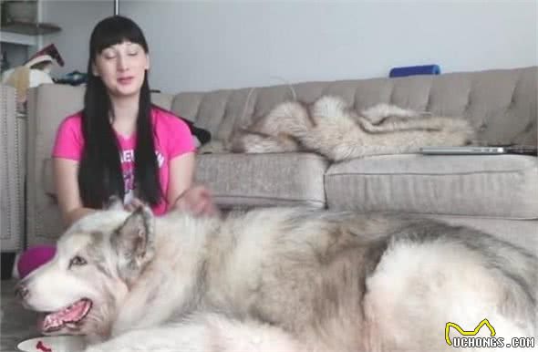 这名外国美女养了一只阿拉撕家,可是这只阿拉斯加和别的阿拉斯加不同,为什么不同呢,因为这只阿拉斯加实在是太大了,体型已经超过了一个阿拉斯加正常的体型。