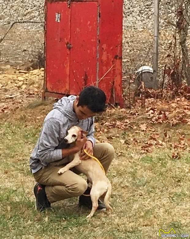 特殊救援行动时,其中一只狗狗紧紧抱住他,不愿放开解救它的男孩