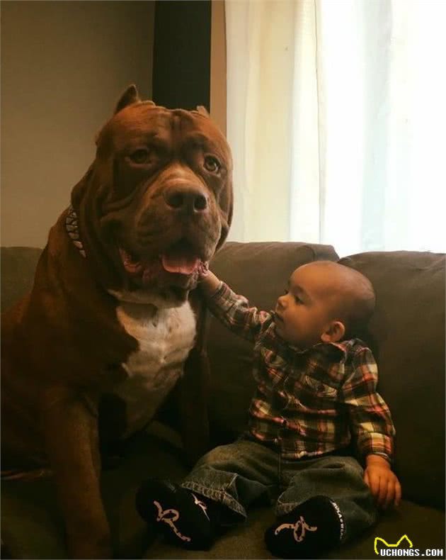 这条名叫Hulk的比特犬,就是世界上最大的比特犬,它身长71.12厘米,体重高达80KG。这只狗狗与它同名的超级英雄一样,满身都是肌肉,并且战斗力强大。要是真的打起来,十个赤手空拳的成年人都未必能够跟它势均力敌。这么强劲的狗狗看着就让人害怕,一般人都不敢饲养,何况是和小孩子养在一起。Hulk的主人不单单敢养,还让它和自己的孩子一块玩耍。