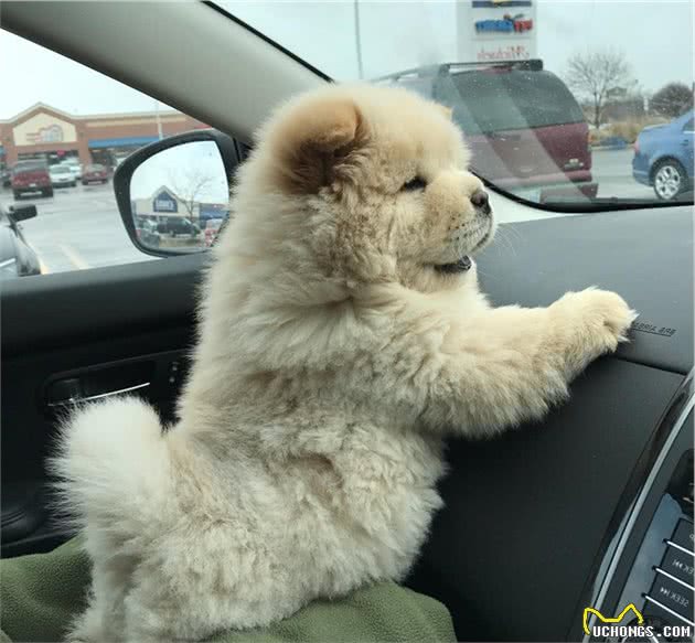 松狮犬在副主驾很高兴地看见窗外,啊别忘了系上安全带呀~