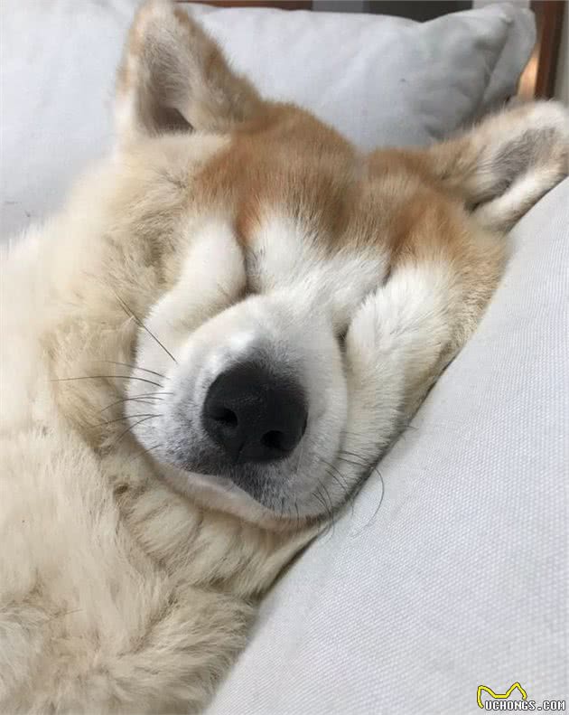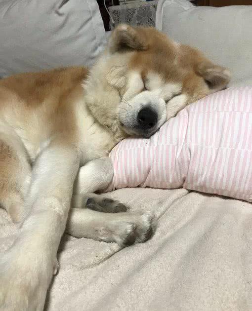 秋田只要一睡觉脸就会变形,可爱模样萌呆全网:它眼睛去哪啦?