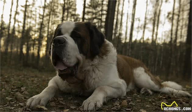 圣伯纳犬是瑞士国宝,以前作为阿尔卑斯山上的搜救犬,习惯了雪山的严寒气候。冬天在雪山里,也能非常自在。