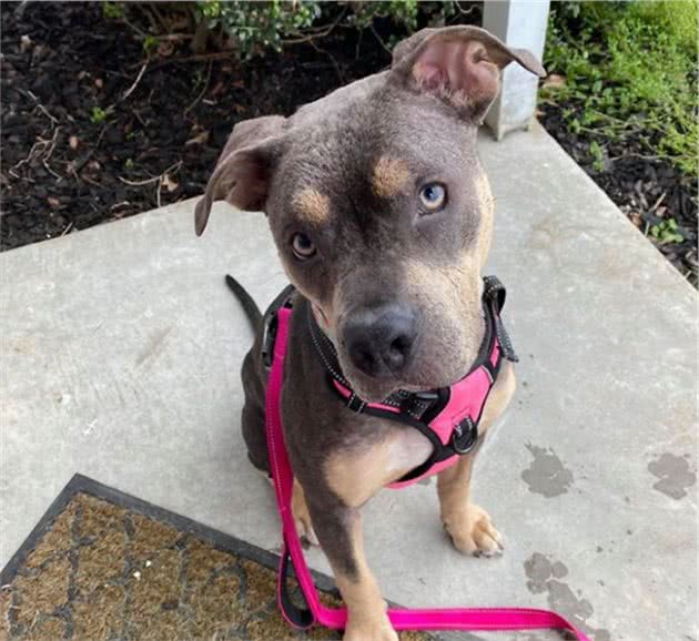 莱利,一只活泼可爱的比特犬,这一切都是铲屎官劳伦给予它的,就连它的名字也是劳伦给它取的。