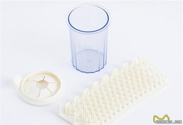 它采用组合式设计,由一个塑料杯身,内部的硅胶刷件和上层的沥水片足成,只需要往杯子里放入适量清水或者免洗清洁液,等狗狗每次回家将洗脚杯套入宠物的足部,转动几圈就完成了。非常简单,方便而且清洗很干净。
