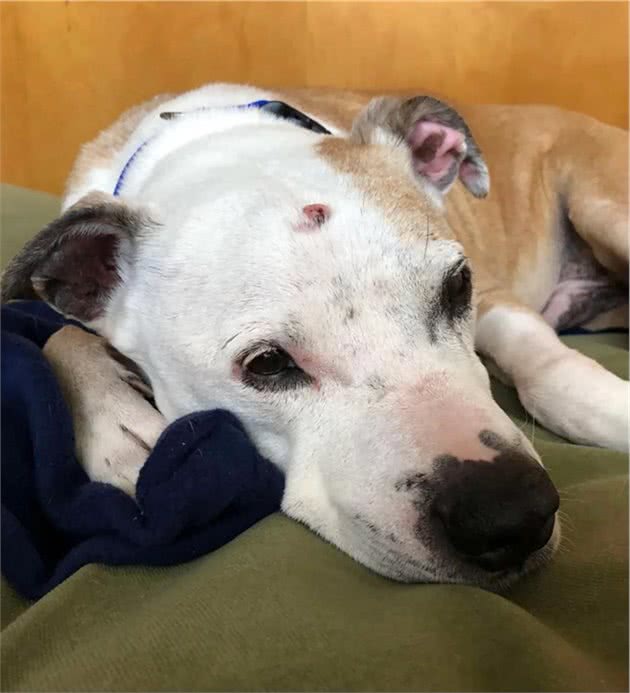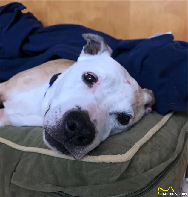 这是一只16岁的老狗狗,被人发现时,它正在街头流浪,虽然身上有芯片,但并没能联系上它的前主人。
