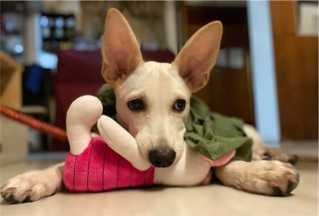 它还有玩具,和玩具一起睡也能让它非常的舒展。