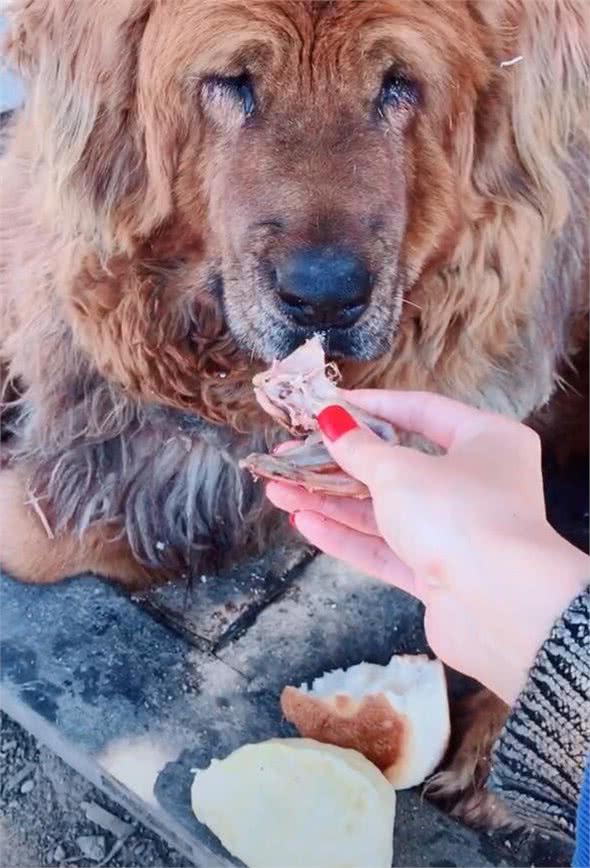 藏獒吃肉的情况下,提心吊胆地张开嘴,外伸舌头舔了一下,全部喂养全过程中,邻居也没有见到藏獒的牙。这只藏獒用餐的过程中很当心,不敢用牙碰触主人家的手,来看,狗狗也是求生欲满满的啊!