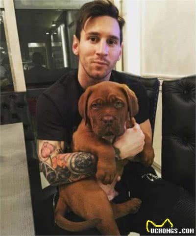 图说:梅西怀抱还未长大的爱犬浩克 网络图